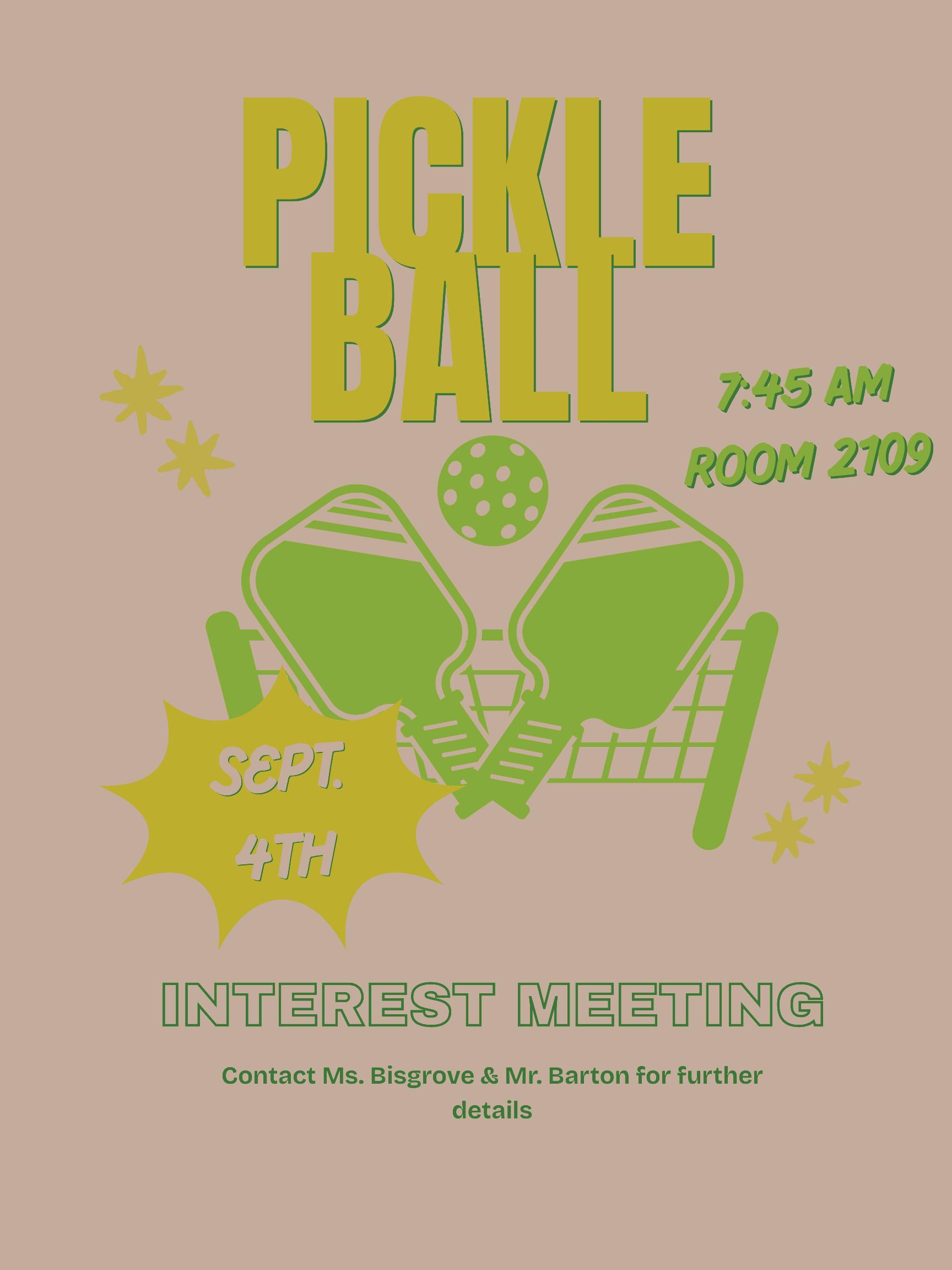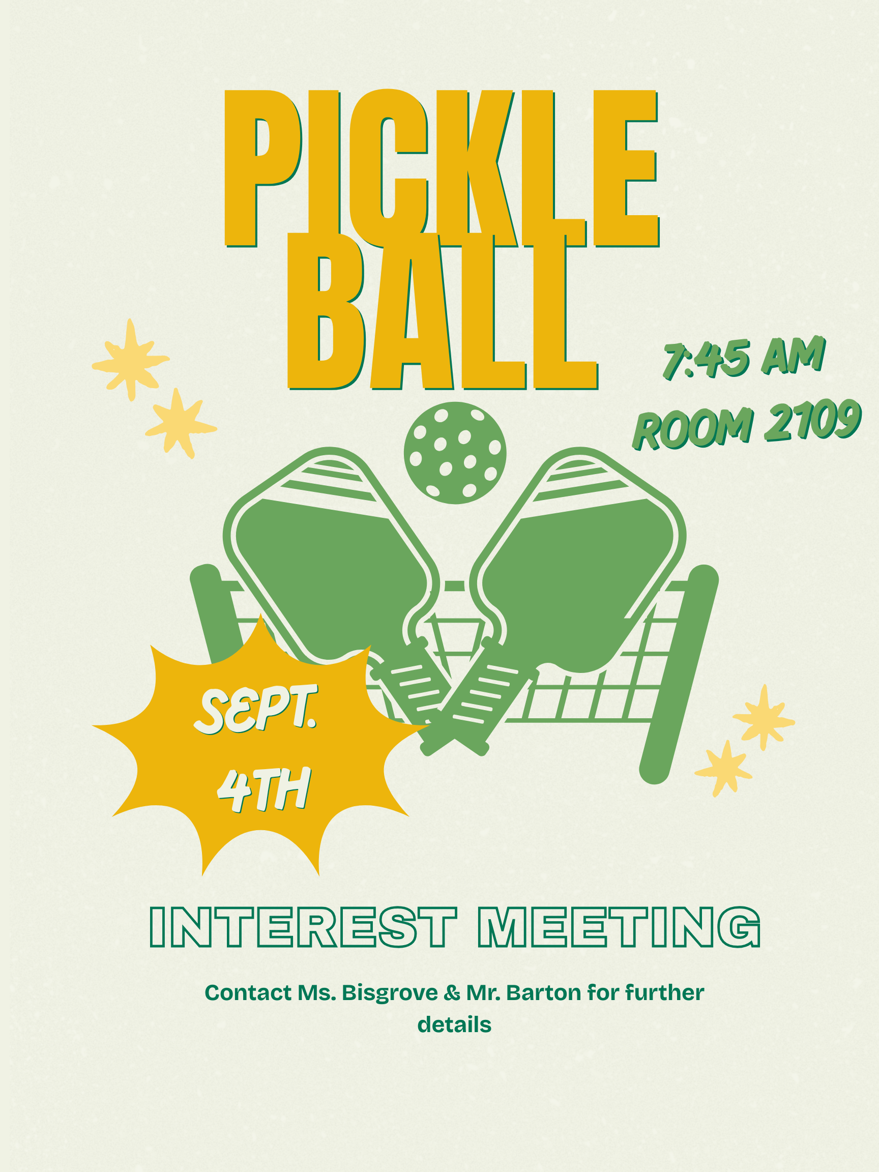 Interest Meeting Poster for High School Pickle Ball Club